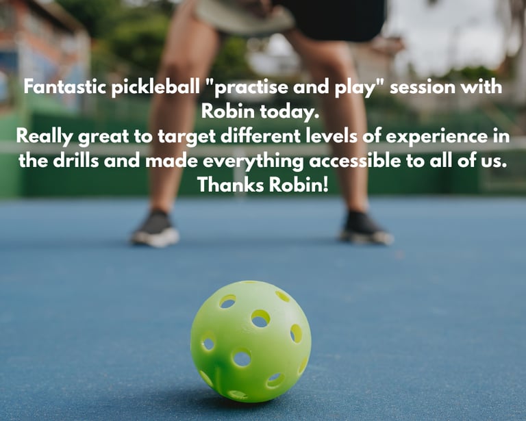 My goal is to help every player enjoy pickleball, improve their game, and feel supported on court. Sessions take place at Atlantic Racquet Centre in Bideford, offering a high-quality environment for fun, accessible learning.